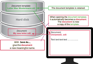 When a Document Template (OTT) is opened in Writer via ▸ ▸ , a copy of it automatically becomes the document (ODT).