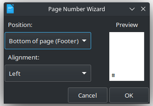 [[File:Pagenumberdlg Preview.png|thumb|center|Page number wizard preview]] | [[File:Pagenumberdlg Preview.png|thumb|center|Page number wizard preview]] | ||